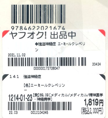 昨日の私は、たまたま町田中央通りのブックオフに行くことにして、いつもは見ない棚をたまたま見る気になって眺めたら、たまたまクレペリンの『強迫神経症』の背表紙が目にとまった。そこで手にとってみたら、「ヤフオク出品中」の商品であることがわかった。結果的に、その本は、ヤフオクからの落札を考えていて、前の晩に入札を忘れたまま終了になっていたのと同じ本であることがわかった。これまで説明してきたとおり、実際に、そのような経過をたどっている。