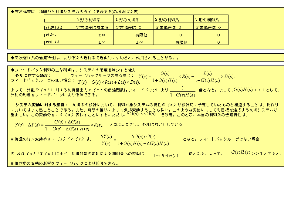 | 定常偏差は目標関数と制御システムのタイプ(形の制御系)で決まる | 詳細説明へ |