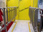 車いす使用者などが手すりにつかまりながらスロープを上りやすく工夫してあります。いろいろな身体の状態で、いろいろな手すりの使い方があります。これは縦の方向の手すりのみなので、横方向の手すりもあるとよりいいかな・・・?と思います。