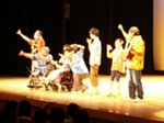 区民祭りの催しで、からだ・年齢・性別などにかかわらず、誰にでも着やすいように、ユニバーサル・デザインの考え方でつくられた最新のモードを披露しました。
