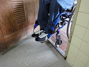 バリアフリートイレは公園内に数ヶ所ありますが、一般トイレ内にバリアフリースペースが設置してあるところでは、入り口は狭く段差がありました。
