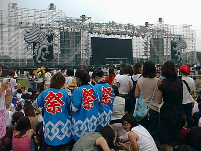 それと、武道館、TOKYO DOMEなどの公演では公演の看板が出ていて、そこで記念写真を撮っている光景がよく見られますが今日は看板が出ていないのが残念です。そこで多くの人がステージセットを背景に写真を撮っています。獅子に翼と題したライブなのでそれをモチーフにしたステージセットです。写真をご覧下さい。何度も申しますがSOPHIAのコンサートはカメラ・カセットレコーダー持ち込み可です。ですのでこのconcert diaryもSOPHIAに限ってはライブの写真もレポートに入ります。