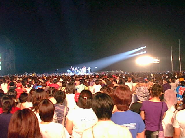 今回はK−6ブロックというほとんどうしろ、まん中辺、少し左。やっと取ったところですね。ちょっと野外にしてはスペースがきついです。いつもはゆるゆるなんですけど 高性能双眼鏡をもってしても米粒くらいにしか見えません。しかし、偶然にも、メンバーがちゃんと見えたのだから幸運と言えます。ただ、セットの関係で3人しか見えませんでした。