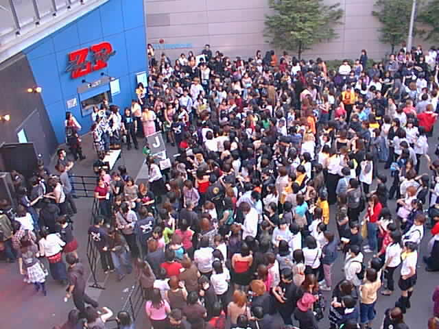 入場すると前の方は既に人でいっぱいなので、後ろの一段高くなっているところの前に立つことにする。例によってこの位置でも十分見えそうだし、余り前に行くと後ろの女の子たちが見えなくなりそうですから。