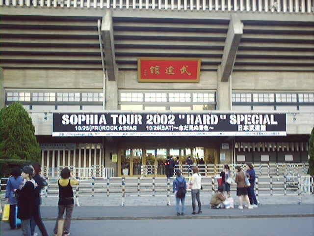 武道館公演ならではの看板。まだ開場時間よりかなり前なので人影もまばら。