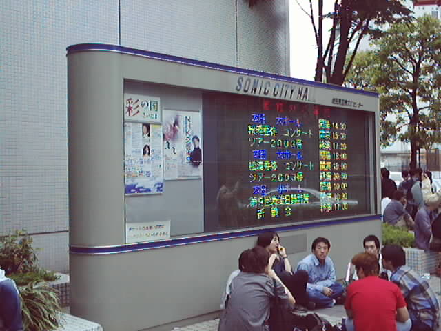 ホールの電光掲示板と告知。