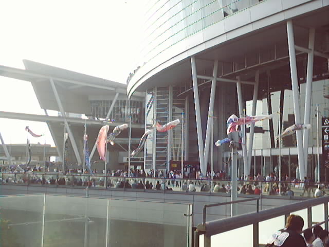 さいたまスーパーアリーナに鯉のぼりが舞っています。