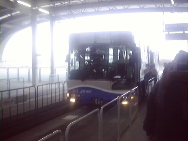 最寄り駅の大曽根には15時30分ころに到着なのは前回と同じ。今回はそこから、ガイドウエイバスに乗ってみます。ガイドウエイバスというのはバスが専用の高架道路の上を走ります。バスですが新交通システムで駅もあり、運転手がハンドル操作をしなくてもガイドウエイに沿って走ります。ずっと先まで走ると高架道路はなくなって普通の道路を普通のバスと同じように運転手のハンドル操作で走ります。今日乗るのはナゴヤドームまでは1駅なのですが、この日本で初めてのシステムを体験乗車します。