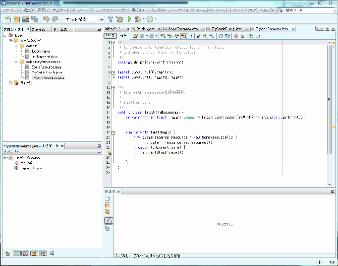 いずれかの設定後、NetBeans IDEを起動すると、NetBeans IDEの表示がNimbusになります。エディタ以外のフォントもメイリオ系になっているのが分かります。