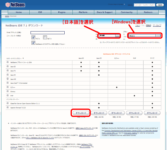 NetBeans 7.1 Java SE版のインストール(Windows 7)